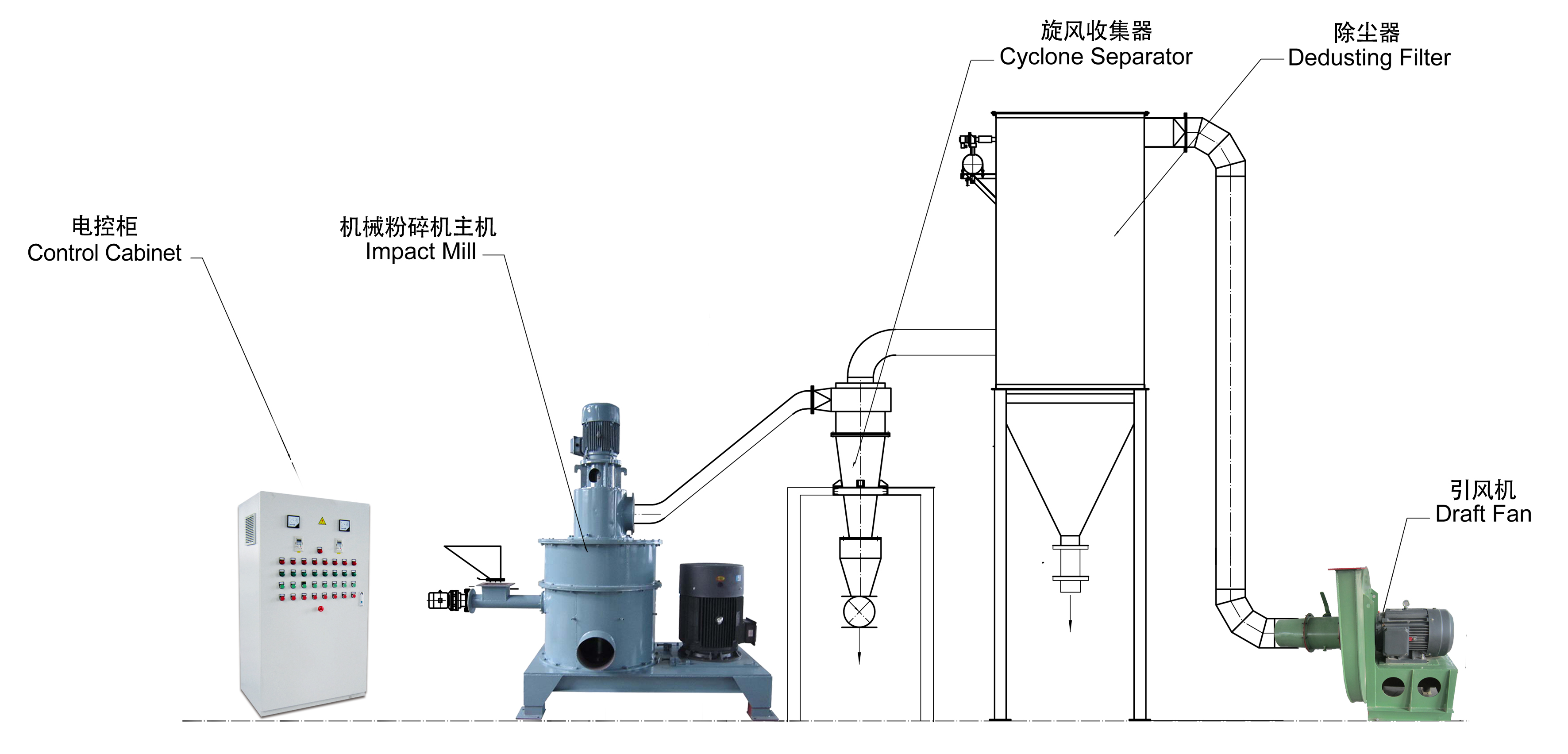 ACM係列機械粉碎機由定量喂(wèi)料係統把(bǎ)物料輸送到粉碎腔內,進入粉碎腔的物料在高速旋轉的動件與定件