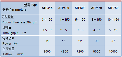 注:1.設備(bèi)的處理量與物料的性質及(jí)產品粒度要求有關。 2.產品粒度可調。