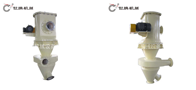 分離後的粗顆粒從分級(jí)機底部(bù)粗料口(kǒu)通過(guò)旋轉閥排出。分級輪(lún)的(de)轉速通過變頻器來控製。