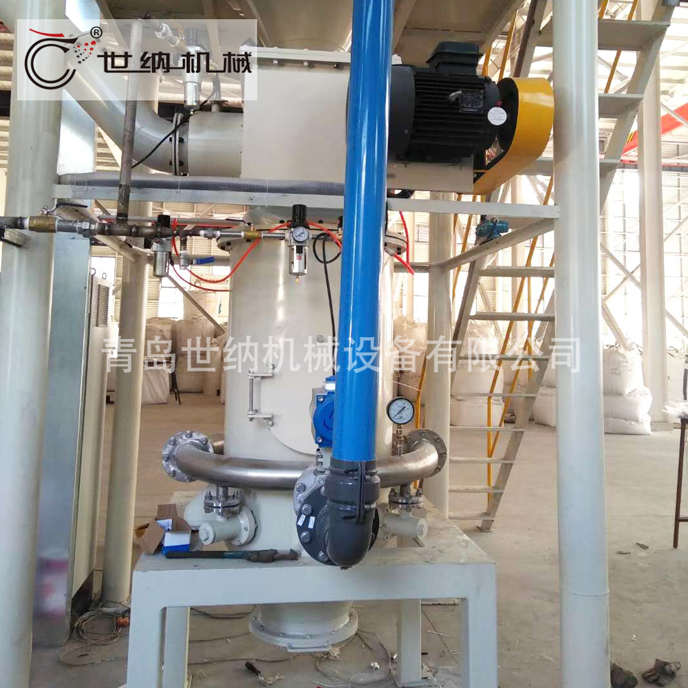 流產生的向心力作用下,使粗細顆粒分開,符合粒徑要求的細顆粒通過分級葉(yè)輪葉片間隙進入旋風收集器和