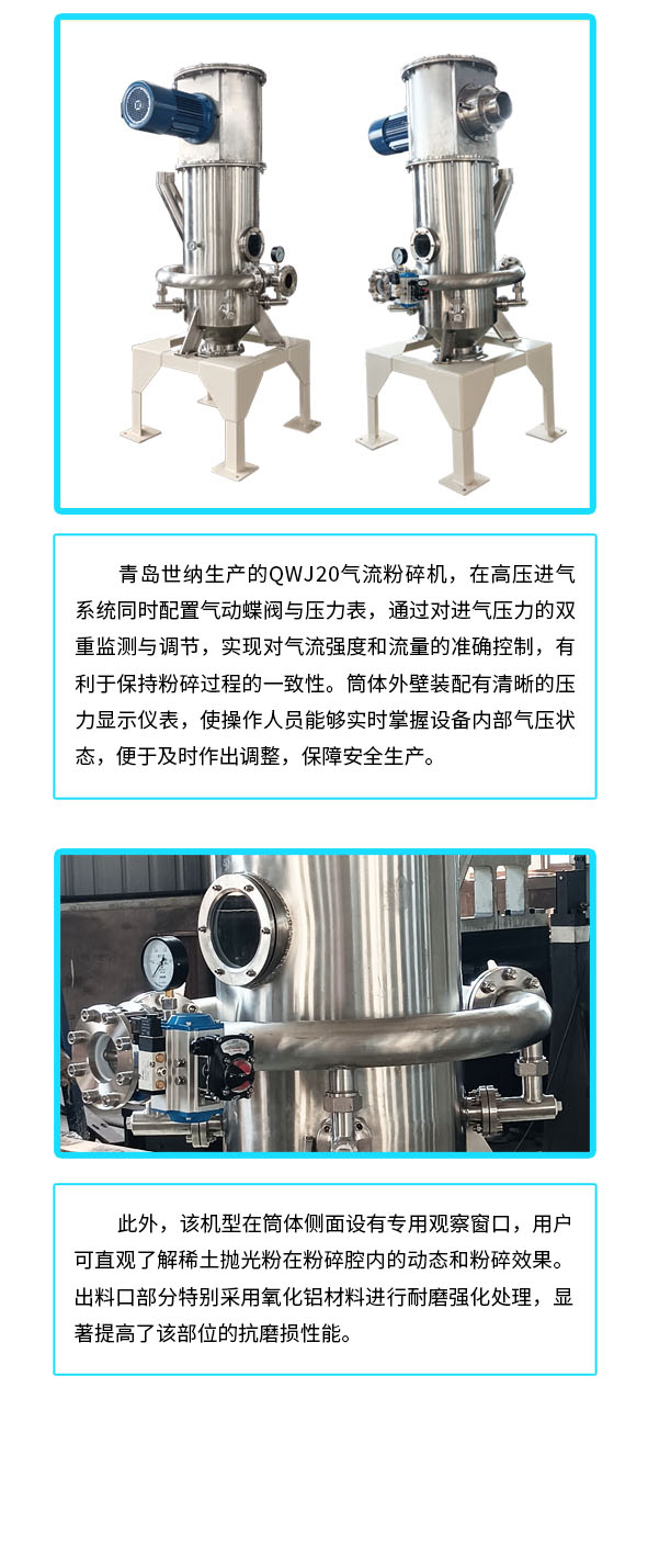 【青(qīng)島青青草网站】超微拋光(guāng)稀土粉用QWJ20氣流粉碎機